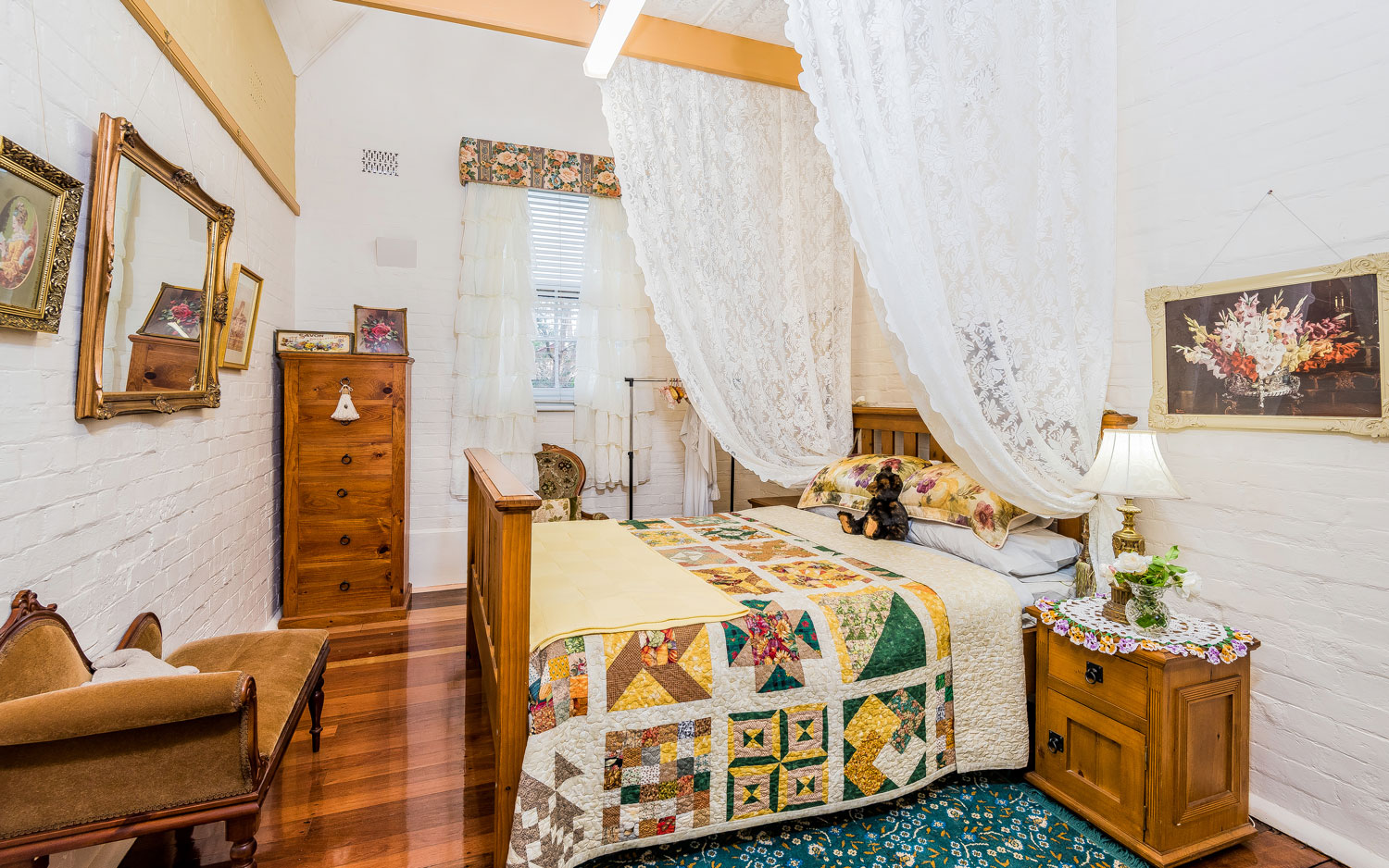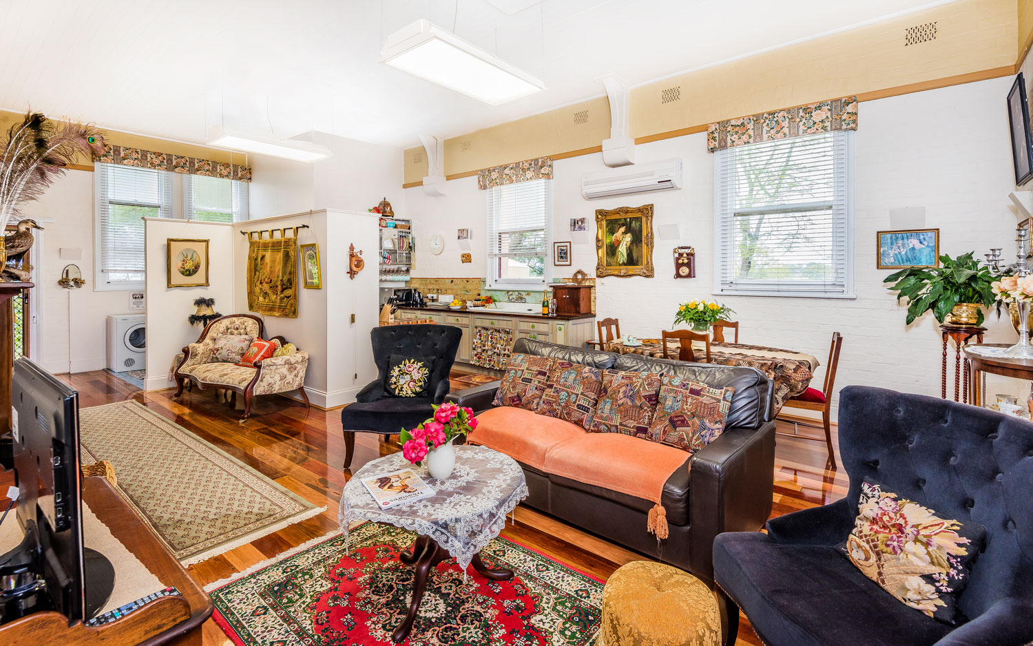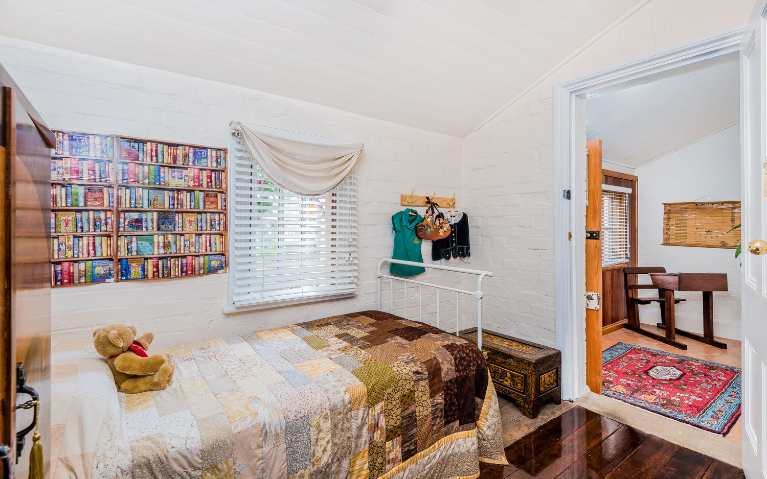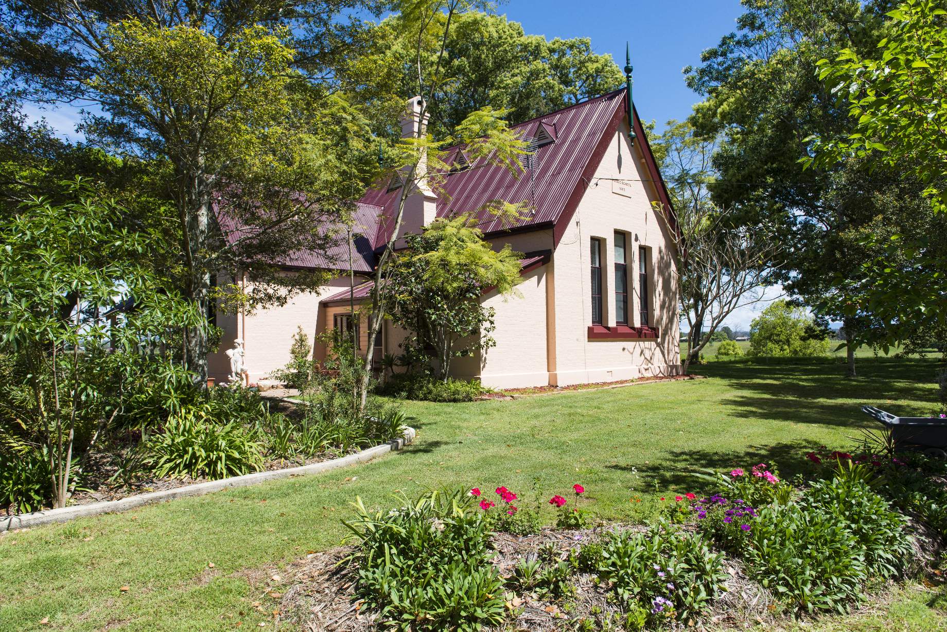 Carrs Creek Schoolhouse is a Heritage Listed brick school with an original, highly pitched tin roof. It accommodates two adults and one small baby. The residence contains a queen bed, a single bed and an antique bassinet. Features include a full size kitchen with electric stove, full size fridge, microwave, washing machine, dryer, wood burning heater, R/C air conditioning and an antique claw-foot bath. Wifi and Smart TV have been installed.